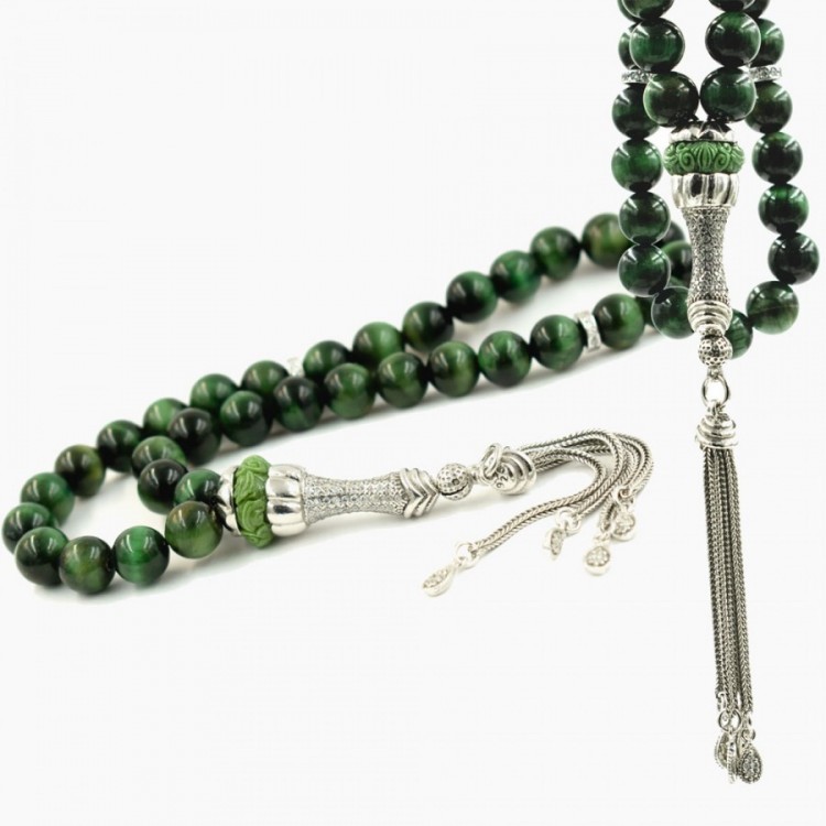 TESBİHİN İMAMESİ VE PÜSKÜLÜ ZİRKON TAŞ İLE SÜSLENMİŞTİR.