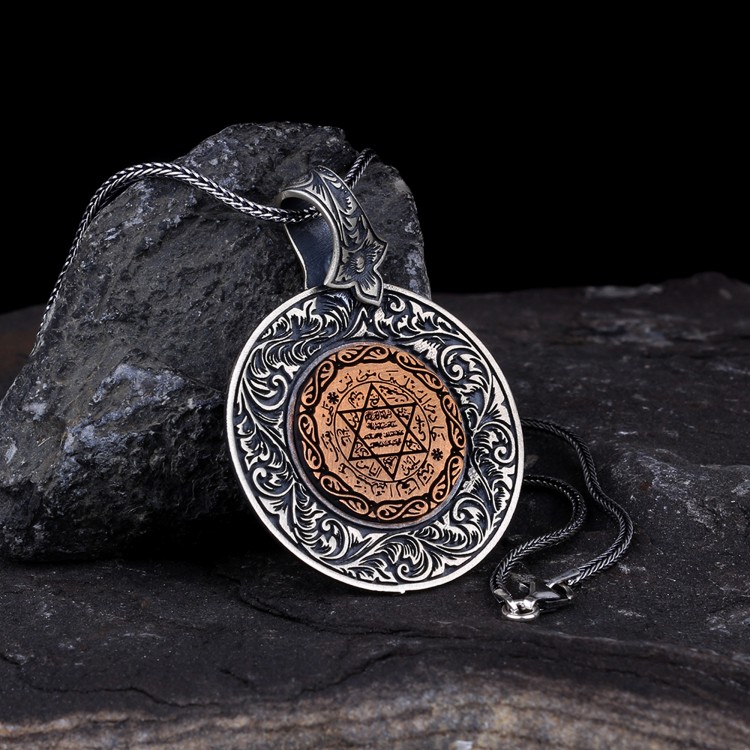 KALEM İŞLEME MOTİFLİ MÜHRÜ SÜLEYMAN MODEL KOLYE
