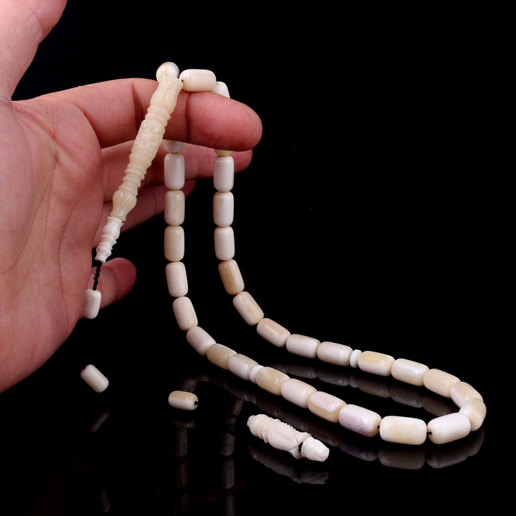Usta Yapımı Oyma İmameli Kapsül Kesim Deve Kemiği Tesbih