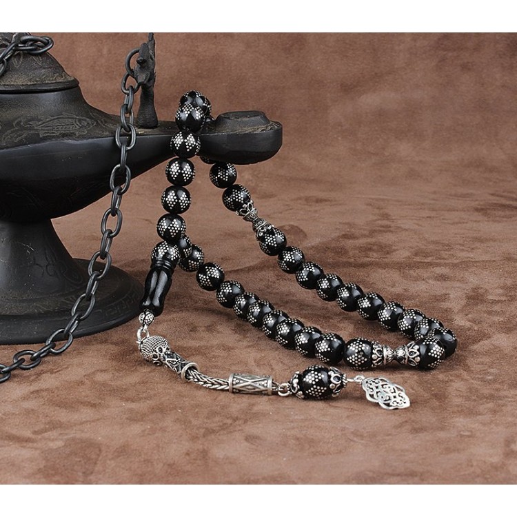 Gümüş Püsküllü Gümüş İşleme Oltu Tesbih