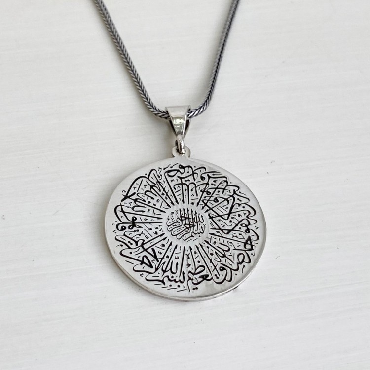 Hz Süleyman Mührü ve Ayetel Kürsi İşlemeli Gümüş Kolye