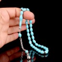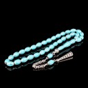 Turkuaz Renk Mine İşlemeli Metal 6 Yarma Model Tesbih